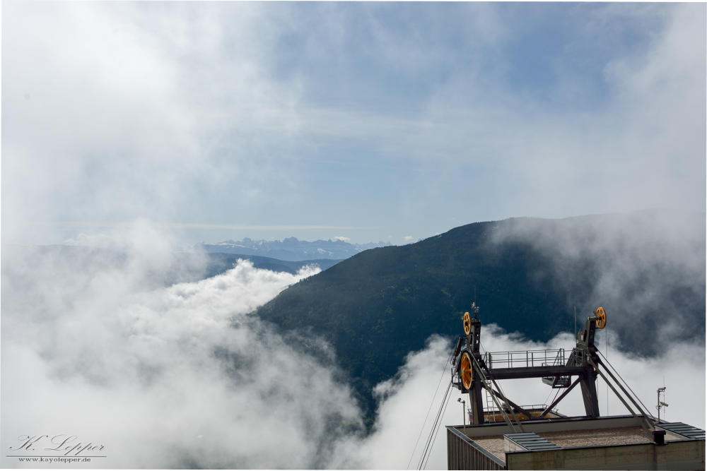 Morgenstimmung an der Bergstation der Texelbahn. Blick zur Rosengartengruppe